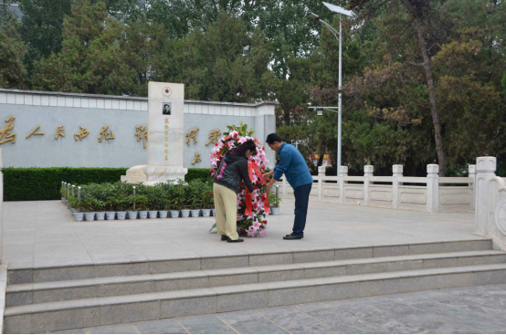 在焦裕禄纪念园,总支书记樊树民同志和教工支部书记宋素芳同志代表党员向焦裕禄烈士墓敬献花篮,全体党员怀着崇敬的心情向焦裕禄同志三鞠躬。在焦裕禄同志墓碑前,全体党员面对党旗,重温了入党誓词,并缓步绕陵瞻仰焦裕禄烈士墓,表达无限的哀思与怀念。