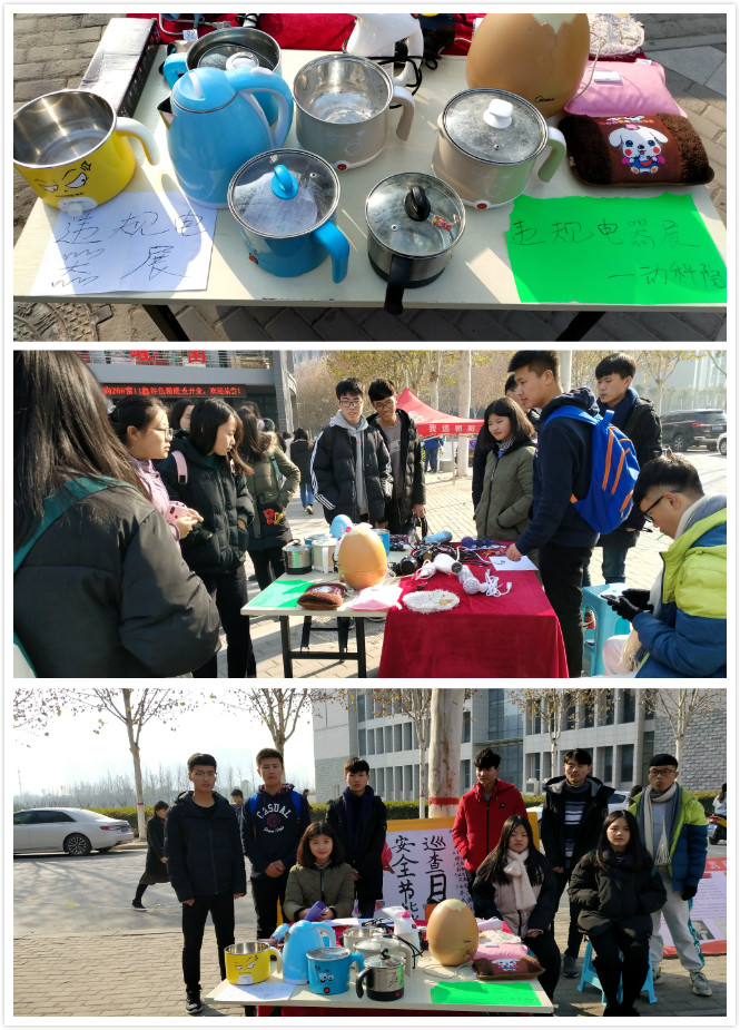 为构建平安和谐校园,保障员工公寓的安全,提高员工的安全防患意识,太阳成集团tyc9728于2018年12月14日中午在食堂门口举办了“违章电器展”。