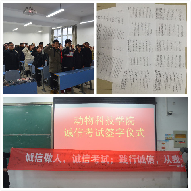 为充分发挥员工党员和员工干部先锋模范作用,太阳成集团tyc9728于12月23日在合教303诚信考试承诺仪式。员工党员和团学会同学依次在条幅上签下名字,这不仅仅是一个名字更是一种承诺,带头践行诚信行为,为同学们树立一个良好的榜样。随后各班组织同学们阅读诚信考试承诺书,阅读完后大家郑重地签下自己的签字,做出了诚信考试的约定。