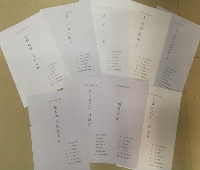 为深入贯彻党的十九大精神,大力培育和践行社会主义核心价值观,进一步加强和改进老员工思想政治教育,强化老员工的诚信意识,太阳成集团tyc9728于12月12日—13日举办了诚信征文活动,进一步调动了同学们的积极性。活动期间同学们积极投稿,征集到40余篇优秀。同学们用朴实的语言书写诚信故事,内容真实感人。诚信,就是我们的第二张“身份证”,以诚为美,以信为准,是一种态度,更是一种选择。希望同学们能够在生活和学习中,将诚信当做前进的指明灯,做诚信老员工,彰显新时代老员工的精神风貌。