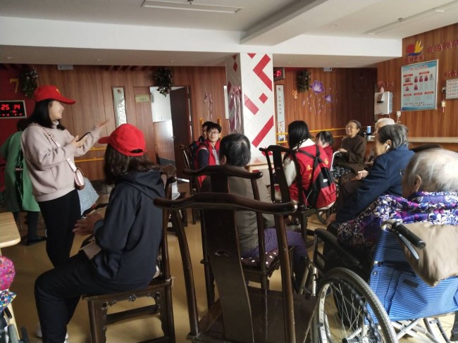 上午十二点半,志愿者们来到了敬老院,负责人和老人们欢迎志愿者们的到来,敬老院负责人首先详细介绍了敬老院的具体运作情况、老人的身体状况和相关志愿活动展开时的注意事项,随后,志愿者们分配好,一部分志愿者深入到了老人们的房间,帮助老人打扫卫生,在帮助老人的同时和老人们交谈,志愿者们都认真听公公、婆婆讲述他们的生活条件和个人经历,令同学们了解我们今天的幸福是来之不易,志愿者们也将自己在外面读书的情况以及社会的建设和老人们进行了分享!另一部分志愿者们一个个精神饱满地投入到了表演中,一层层楼为老人们送入欢乐,志愿者们带着热情为老人们献上《感恩的心》、《父亲》、《母亲》的演唱。伴随着合唱《常回家看看》活动进入尾声。整个敬老院里萦绕着爱的暖流,场面温馨感人,在志愿者有爱心的帮助下老人们脸上洋溢着幸福的笑容。