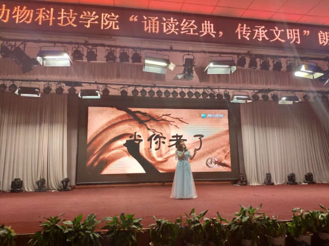 朗诵者经过精心的备战,自信与坚定写在脸上。字字铿锵、情真意切,声声令人动容。《再别康桥》、《致橡树》、《我的南方和北方》等经典作品的朗诵,带我们重温那些历久弥新的文字;朗诵者带来的《念奴娇·赤壁怀古》一字一句都饱含深情,让观众感觉,这是一场视听的饕餮盛宴;在中场环节,朗诵和合唱结合起来,真让人热血沸腾,虽不能常与祖国厮守在一起,便把满腔爱国情思用声音洒向现场。在朗诵者心中,有一处华夏乡音的港湾,一座永不倒下的东方文化浮雕。一曲的《我和我的祖国》,深情的演唱,感染了现场的每一位听众。“挥泪斩马谡”将现场气氛推向高潮台下观众的掌声不断。观众都明白了,纪律是一切制度的基石;伴着优美的音乐、立体效果的背景屏幕,同学们的朗诵或慷慨激昂、或娓娓道来,充沛饱满的情感,自信大方的形象,赢得观众们的阵阵掌声与喝彩。