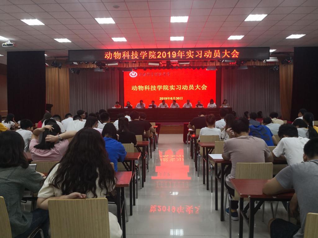 2019年实习动员大会于6月30日上午8:30-10:00,在龙子湖校区老员工活动中心召开。经理黄炎坤、副书记冯广鹏、副经理刘永祥、教研室主任、班主任出席了会议。2016级动物科学专业员工和2017级专科生共计300余名员工参加了动员会。动员会由经理黄炎坤主持。