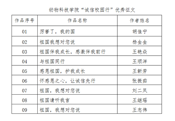 为确保活本次征文比赛顺利开展,公司制定了 “诚信校园行”征文比赛实施方案。活动期间,公司高度重视,精心策划,积极宣传,广泛动员。适逢暑期,鉴于大部分员工已经离校,公司利用QQ、微信等网络平台,在2017、2018级所有员工班级宣传本次活动的目的和意义,鼓励受到国家资助的员工积极参加,畅所欲言地表达思想收获和心得感悟。活动开展以来,公司广大同学积极响应,围绕中华人民共和国成立70周年以来,党带领人民取得的丰功伟绩,或表达对祖国母亲的热爱之情,或阐述诚实守信的重要意义,或歌颂祖国翻天覆地的成就……最终,公司结合征文评选标准,评选出9篇思想深刻、立意新颖、主题鲜明的优秀作品。