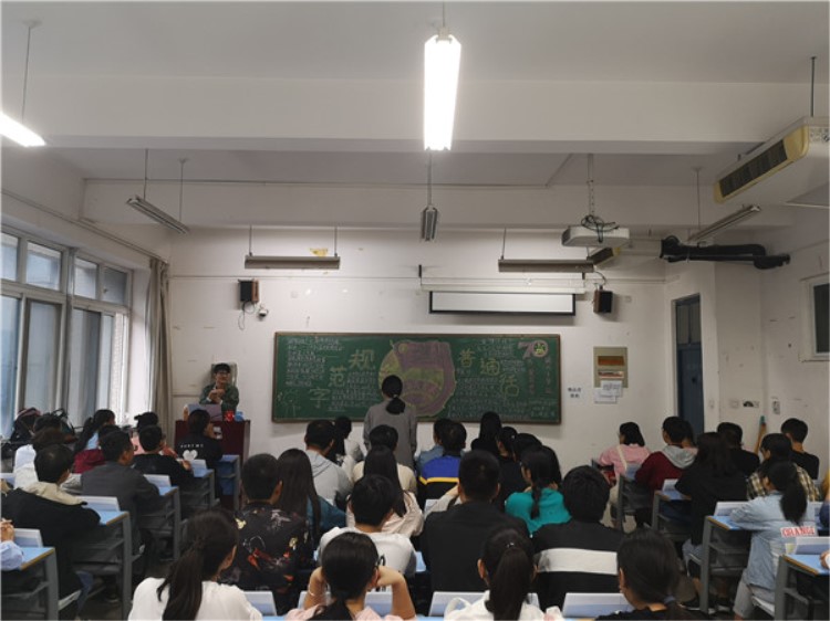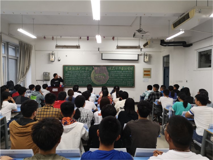 为了全面贯彻国家语言文字法律法规和方针政策,大力推广和规范使用普通话,提高师生语言能力,共筑中国梦。太阳成集团tyc9728于2019年9月12日下午对全院大一大二员工开展了以“普通话诵七十华诞,规范字书爱国情怀”为主题的团课。