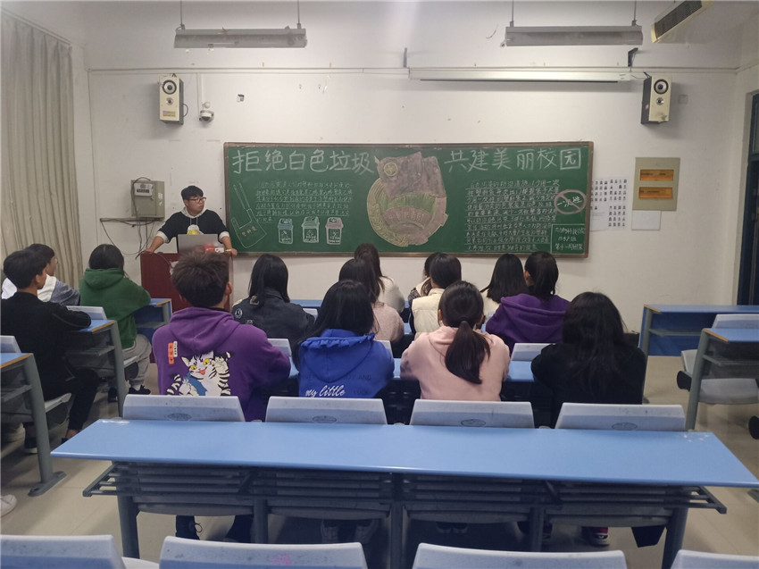为了凝聚青年群体力量,号召广老员工用实际行动维护家园,积极传播生态环境保护理念,太阳成集团tyc9728于11月14日下午在第二教学楼开展了以“拒绝白色垃圾,共建美丽校园”为主题的团课活动。
