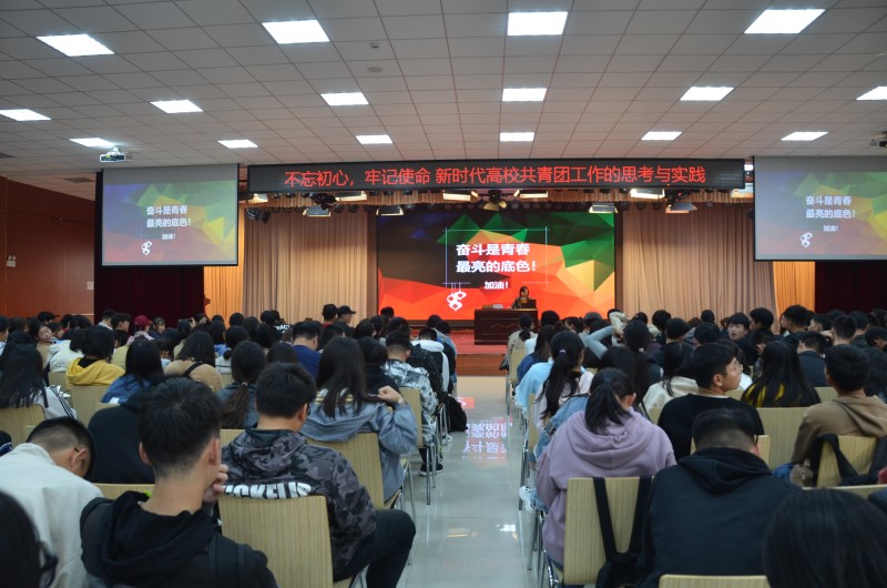 杨莉书记从明确党和团的关系、如何开展团学活动、贡献自己的青春力量,三个方面给大家讲述了新时代高校共青团工作的思想与实践。杨书记从党和团组织的成立与发展过程,讲述了党和团的共生共荣的关系,最终目标是实现中华民族伟大复兴的中国梦。在如何开展团学活动方面杨书记告诫同学们,员工干部要有领导意识,谦卑的态度,海纳百川的心胸;开展活动要注重活动效果,从多个角度看待问题。对此团委书记杨莉也分享了自己对人生的精神贵族、生命意义、自律修身三方面的感悟。杨书记鼓励同学们贡献自己的青春力量,做好自己的本职工作,要平衡工作和学习,合理安排空闲时间。最后,团委书记杨莉给大家提出了六点建议:完善自己的人格,规划好自己的人生,学会学习,学会思维,多读书才是硬道理,培养独立思考能力。