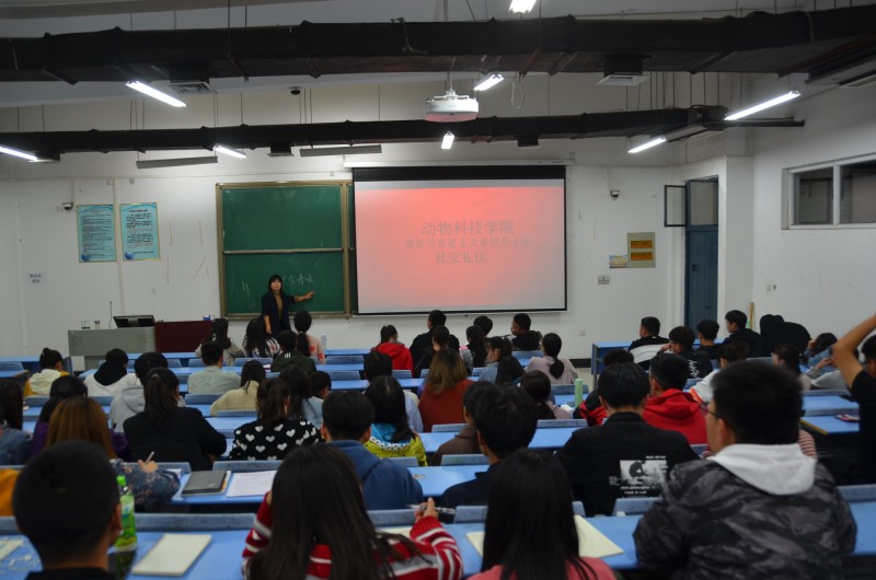 首先,霍老师用幽默的语言简单介绍了自己,接着霍老师用“握手的小活动”活跃了会场气氛,同时引入了今天活动的主要内容——社交礼仪。霍老师讲道:礼仪是约定俗成的符合礼的精神,是要求每个社会成员共同遵守的规范和准则。然后霍老师从仪容仪表、仪态礼仪、握手礼仪、电话礼仪、称谓礼仪、活动礼仪、办公室礼仪等几个方面详细介绍了日常工作中的社交礼仪。霍老师不但用语言来讲述了社交礼仪,还在现场亲自示范,让同学们感到十分亲切,相信在霍老师的讲述和示范下同学们一定会成为更优秀的员工干部。