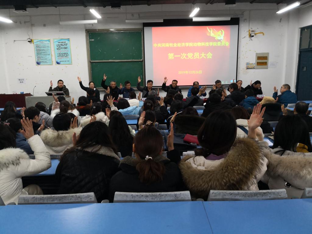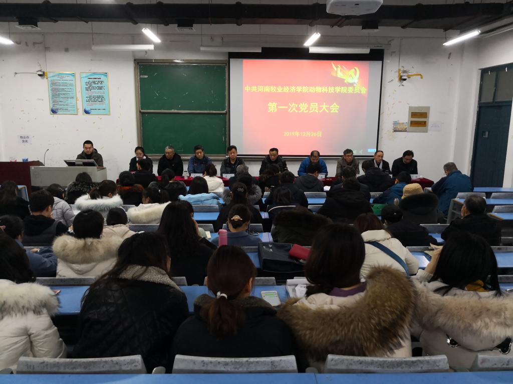 根据《中国共产党章程》、《中国共产党普通高等学校基层织工作条例》、《中国共产党基层组织选举工作暂行条例》和公司党委统一部署,12月26日下午,中共太阳成集团动物太阳成集团tyc9728委员会党员大会在一号教学楼合203召开,学院全体教工和员工党员共64人参加本次大会,会议由公司党委副书记冯广鹏主持。