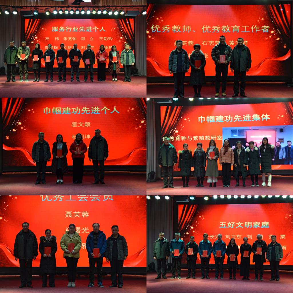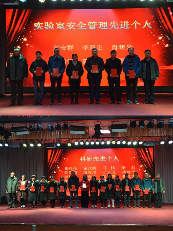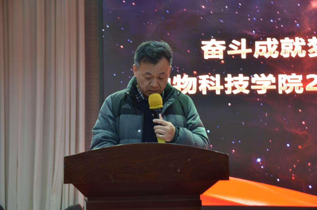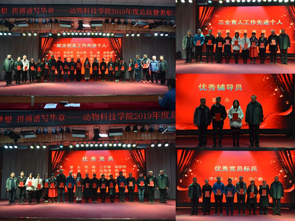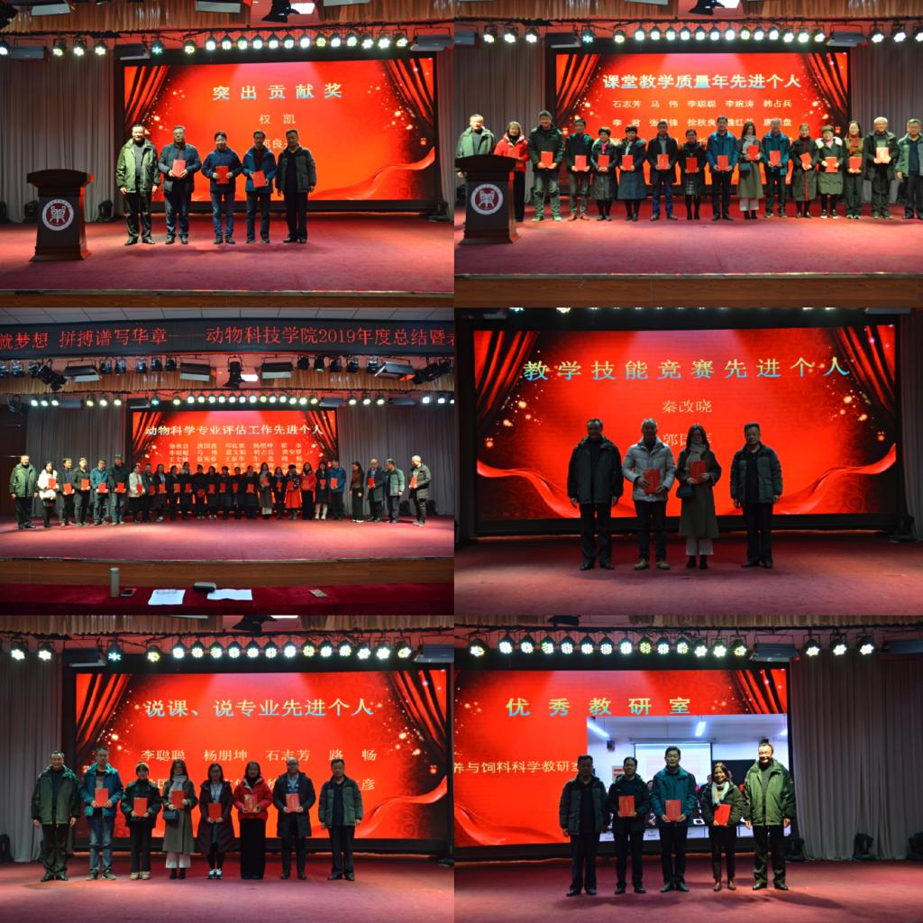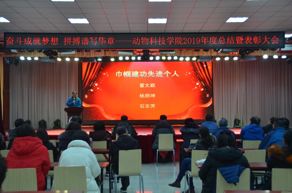 首先,经理席磊教授作年终总结报告,他回顾了2019年全院师生在教学、科研、团队队伍建设等各方面取得的优异成绩,尤其是“黄淮肉羊”新品种通过了国家品种鉴定委员会的现场审定,实现了历史性突破。接着,公司党委副书记冯广鹏宣读了表彰决定,对2019年度在党建、教学、科研、实验室工作、社会服务、工会和员工工作中表现突出的集体和个人进行了表彰。家禽生产教研室、动物遗传育种与繁殖等4个先进集体,权凯、郭良兴、李君、石志芳等优秀个人受到了表彰。公司党委书记王建伟、经理席磊在台上为每一位受表彰的教师颁奖。教师代表郭良兴博士代表教师进行发言,他细数了2019年自己在院领导的指导和同事们的协助下为教学、科研和校企合作所做的工作。他表示,今后将继续认真做好每一件事、服务好身边的每一个人,为学院发展尽心尽力。最后,公司党委书记王建伟致辞,并代表班子成员对全体教职工付出的辛勤和做出的贡献表示感谢!他号召大家“在新的一年里,让我们用汗水浇灌收获、以实干笃定前行,凝心聚力、提振精神,不负伟大时代,共创美好未来!”