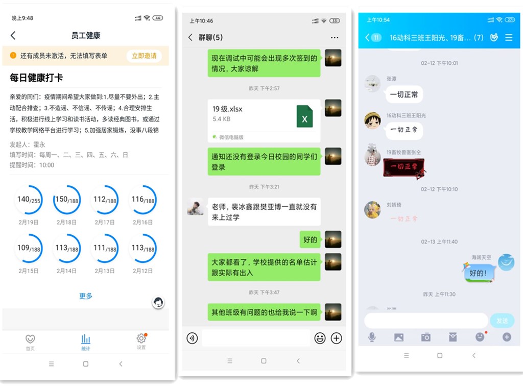 在抗击疫情中,霍永老师主动加强与员工的联系,时刻关注员工情况动态,组织班级员工每日进行健康打卡,统计员工外出打工情况,排查员工是否有到过疫情严重地区或相关人员接触史,确保第一时间帮员工排查出自身是否有安全隐患。定期组织召开员工干部视频会议及时传达学校的最新会议精神,引导员工在疫情期间停课不停学,积极参与学校的线上课程。