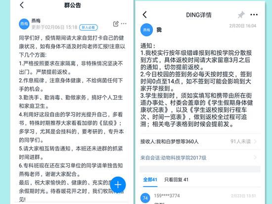 在没有电脑的情况下,燕梅老师每天守着手机,努力坚守自己的岗位,通过摸排统计,掌握了全年级360名员工的情况,确保一个也不能少;并根据本专员工的不同情况进行分类指导、精准施策。针对2017级的本科生,着重进行学业指导,建立了钉钉群,为任课老师进行网络直播课提供便捷,通过健康打卡,增设问题,了解员工网课上课情况。整体来讲,同学们反映网课情况良好,但也存在一些问题,从大家的回复中也感受到了大家前所未有的高涨学习热情和返校意愿。此外,还提醒考研的员工能够利用好这一段时期积极备考,督促员工坚持学习不掉线。针对2017级的专科生,侧重进行就业指导,积极为员工转发各种招聘信息以及就业信息政策等。对于报考专升本的员工,积极为员工提供学习信息及辅导渠道,鼓励员工在家克服困难,克服惰性,珍惜时光,共克时艰。针对一些同学还在实习岗位的情况,建立了一个在外实习打卡群,每日报平安,确保这些员工在实习岗位的平安与健康。