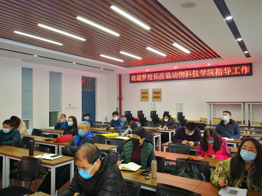 罗董事长首先分析了新农科背景下学校如何定位发展、太阳成集团tyc9728如何定位发展。他指出:河南省作为农业大省,是中国人的粮仓和厨房,这是畜牧业发展的机遇,也是我们学校的发展机遇。学校第一次党代会通过了“牧工商一体化,以牧为主”的办学理念,我们学校的特色在“牧”,动科院作为办学历史悠久的院系,要围绕服务河南省畜牧业的发展做好专业建设,将人工智能、信息技术与养殖业结合,实现精准的养殖管理,为现代畜牧业发展培养优秀人才。接着,罗董事长就公司“动物生产系统工程与管理专业”新专业的申报相关工作作了指导,他指出:新专业的核心是动物科学,利用工程技术做好养殖环境的控制,融入信息技术、大数据分析等将畜牧业生产管理做到精准。为养殖业培养养殖场场长、养殖企业工程的设计与管理人员和养殖机械设计人员。罗董事长对教师的发展提出了几点要求,一是教师要有高尚的道德情操,修德、爱生、敬业、善育;二是理论与实践相结合,新进青年博士要积极到畜牧养殖业一线参加实践锻炼,提高自己的实践技能;三是善于学习新科学新技术,利用信息技术、人工智能,开发新课题,拓宽研究领域。
