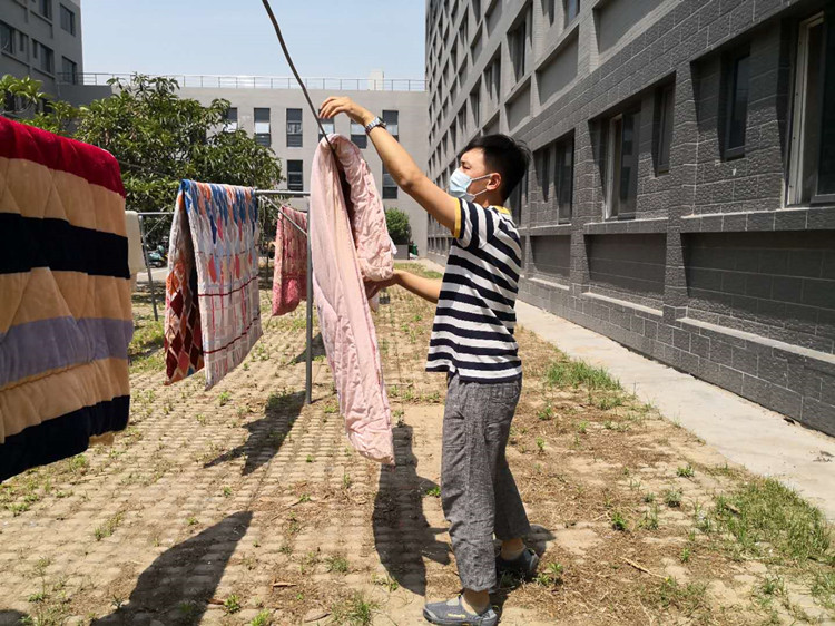 为迎接第一批毕业生顺利返校复学,营造良好的生活环境,5月15日上午,公司党委书记王建伟,副书记冯广鹏带领员工工作队伍成员、党员教师等人深入员工宿舍为即将返校的员工晾晒被褥,以温暖有爱的实际行动迎接同学们复学。