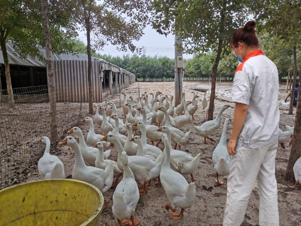 为了把自己所学的专业知识运用到家乡扶贫工作的进行中,公司员工刘平泉、张燕敏、周徐梅、郝茹萌、刘倩、曹瑞华找准方向,精准定位,最终决定帮助一家四川全季节生产白鹅养殖厂摘下贫困帽。由于全季节生产白鹅养殖难度较大,所以此次扶贫任务十分艰巨。为了保证扶贫计划的有效性,小组成员在指导老师王文棣和刘健的带领下先后到禹州市盛博园林有限公司、河南圣霖林牧科技发展有限公司、河南恒歌鹅业发展有限公司、河南原阳云波鹅业合作社等公司(合作社)进行全面调研,详细了解了全季节生产鹅的生物学习性和饲养管理要点,为扶贫工作的顺利进行打下了坚实的基础。在参观学习之后,小组成员立刻赶往了该养殖场,与养殖户耐心交流,发现问题、解决问题,共同共克了一个又一个的技术难关,帮助养殖户提高了鹅的存活率与产蛋量,使该养殖场的营收创下新高。