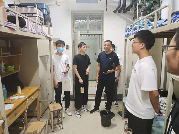 党委党委书记王建伟来到2020级新生宿舍,与员工拉家常谈心,询问了解大家进校后的感受以及饮食、生活等方面的情况,还对新生所关心的问题给予了回答。王书记对同学们提出殷切希望,要尽快转换角色,熟悉新的环境,团结同学,处理好各种人际关系,以积极的心态和良好的精神面貌迎接大学校园生活,勉励大家要做好学业规划,立下目标,通过努力奋斗去实现。党委副书记冯广鹏还叮嘱同学们,要注意宿舍用电和人身财产安全,要强化安全意识和自我保护意识,遇到困难要及时和辅导员、老师沟通交流,希望大家一起共同度过美好的大学时光。