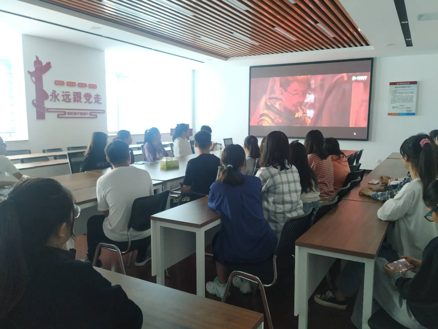 通过播放爱国教育电影,用光影追忆党的光辉历程,催人奋进、给人启迪,既重温革命历史,又提高员工的爱党爱国意识。观影现场一片唏嘘,处处是擦拭眼泪的瞬间。影片落幕良久,大家依然无法平息内心的震撼和感动,许多同志热泪盈眶,纷纷表示,今后一定要铭记历史,学习先烈,坚定理想信念,永远和以习近平同志为核心的党中央保持一致,提振精神,昂扬奋发。本次观影活动也让同学们在校园里感受到浓浓的节日气氛。