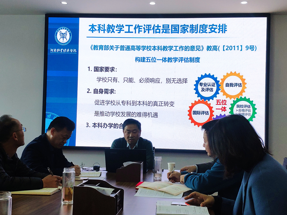 边传周教授结合本科教学评估的要求、合格评估的核心内涵等方面来阐述做好迎评促建工作的总要性,强调了学校最大的道德是育人,教师最大的道德是育人,教师是人类灵魂工程是,教师要塑造员工的灵魂首先要塑造好自己的灵魂。对待员工教育要引导员工端正学习太度,培养学习兴趣,学会自主学习,塑造良好的价值观。作为教师要不忘初心牢记使命,树立以员工为中心的教育价值观。