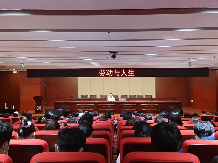 图书馆一楼报告厅热情洋溢、气氛热烈,报告会在热烈的掌声中拉开帷幕。罗董事长围绕四个方面,阐述了劳动的重要作用,第一,从人类进化历程看劳动;第二,从优秀的中华民族精神看劳动;第三,从优秀的中华文明看劳动;第四,当今社会劳动的现实意义对人生的影响。罗董事长紧贴中华优秀传统文化,重点围绕中国人民具有的伟大创造精神、伟大奋斗精神、伟大团结精神、伟大梦想精神,全面阐释了几千年来中华民族热爱劳动、善于劳动、尊重劳动,勤俭节约的优良传统美德,解读了新时代老员工德智体美劳全面发展的历史要求,勉励全体青年学子要以劳树德,以劳增智,以劳强体,继续弘扬劳动精神,克服艰难险阻,让能力在劳动中得到提高,本领在劳动中得到锻炼,用辛勤的劳动为学校增光添彩。