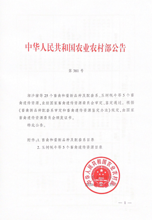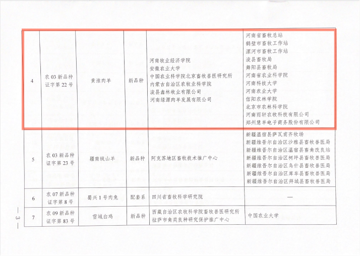 2020年12月31日,中华人民共和国农业农村部发布公告,公司权凯博士主持培育的“黄淮肉羊”新品种经国家畜禽遗传资源委员会审定、鉴定通过,并由国家畜禽遗传资源委员会颁发证书。
