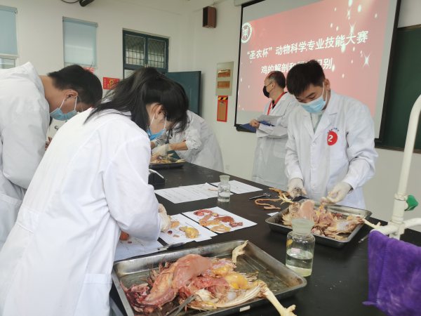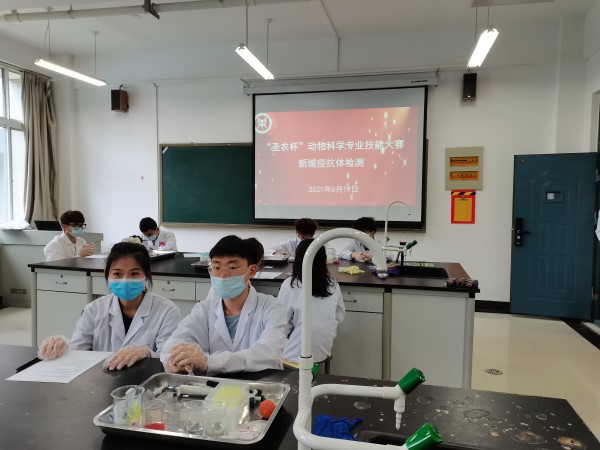 本次大赛分设两个项目,分别是鸡的解剖及器官识别、新城疫抗体检测。两个项目分别有不同的评分标准,评委老师严格按照评分细则进行打分评定。尤其是新城疫抗体检测这一项目,在所有参赛选手全部精确完成操作的基础上,完成时间长短成为重要的考核依据。参赛选手们经过两个小时紧张激烈的比赛以及评委老师们严谨细致的评分,本次比赛顺利完成。