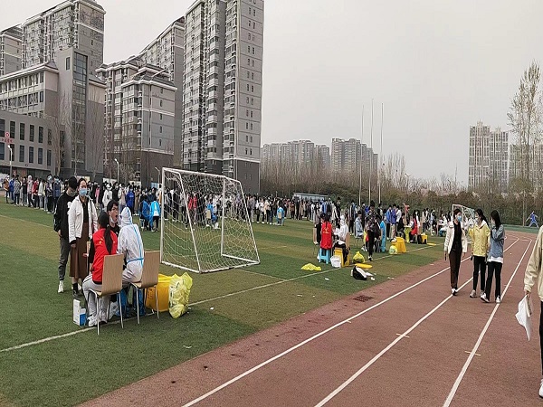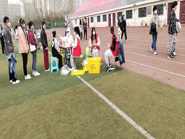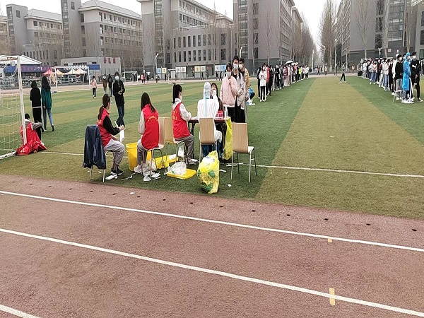 身穿红马甲的志愿者们准时到达集合地点,进行分组后,志愿者们分别前往各个核酸检测点帮助医护人员统计信息、维持现场秩序、向前来询问的同学认真讲解核酸检测网上报名流程;以及疫情防控相关规定,介绍了校内外疫情防控形势,告知他们擅自外出的风险,并且提醒他们要重视核酸检测,并积极配合学校相关的疫情防控工作。绿色田径场上的“红马甲”们认真负责,在阳光明媚的校园里显得格外耀眼。
