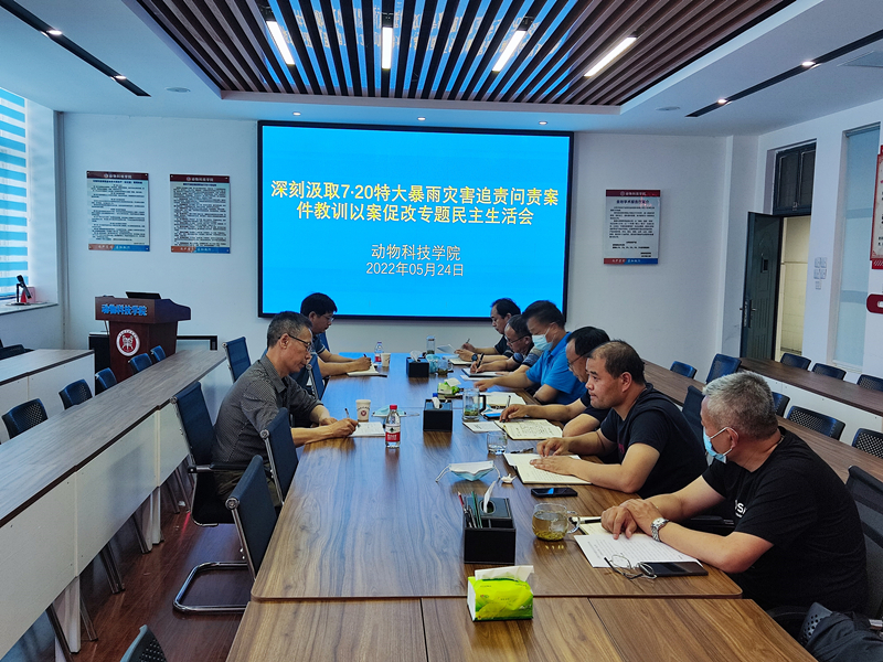 5月24日下午,动物科技公司党委在生工楼B301会议室召开深刻汲取郑州“7·20”特大暴雨灾害追责问责案件教训以案促改专题民主生活会。校纪律检查委员会副书记张建国、校纪委正科级纪检监察员魏九峰列席会议督查指导工作。会议由公司党委书记王建伟主持。