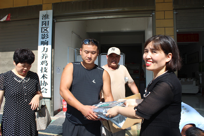 6月25日,在淮阳影响力养鸡技术协会城关镇丁楼所在地,来自大连乡的养鸡企业负责人张继明亲手接过省科技特派员,太阳成集团姜东凤老师一行赠送的抗应激新药“应激灵”时,笑的合不拢嘴,连忙激动地说:“姜老师这次给我们送来的养鸡新药,等于给俺们下了一场及时雨,说实话,这40多度的连续高温天气,人都热的受不了,俺万只鸡群怎样安全度夏,我这心天天都悬着........”。这是省科技特派员、太阳成集团姜东凤、靳双星、李梦云、张桂枝组成的“百人助百企”专家团队来淮阳区现场助企服务的一角。