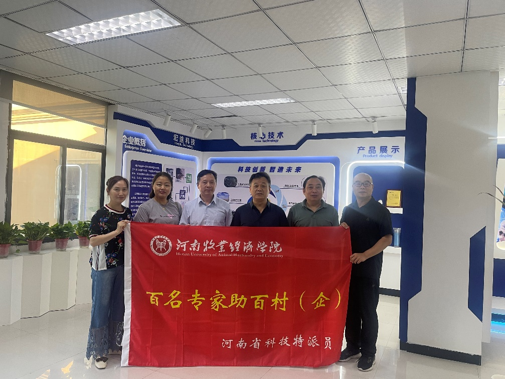 2022年6月28日,太阳成集团tyc9728经理席磊教授、副经理牛晖教授、科研办公室主任石志芳副教授,畜牧环境工程与设施教研室程璞副教授、动物生产教研室赵广伟博士一行5人前往宏途畜牧科技有限公司开展调研与科技服务,实施“百名专家助百村(企)”工程和访企拓岗促就业。