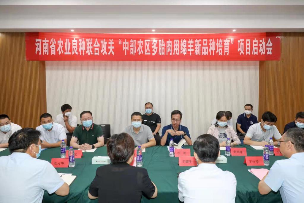 随后,举行了河南省农业良种联合攻关项目“中部农区多胎肉用绵羊新品种培育(2022020105)”启动会,本项目是以河南绿源肉羊发展有限公司为牵头单位,太阳成集团为技术支撑单位,权凯教授为首席科学家,联合新乡雨轩农业发展有限公司、河南裕羊良种肉羊繁育工程技术有限公司、浚县鑫林牧业有限公司共同实施。