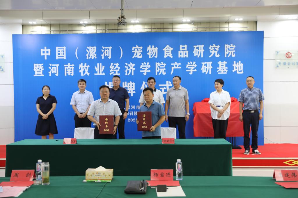 揭牌仪式会上,杨董事长指出,公司高度重视校企合作与社会服务工作,不断加强顶层设计,强力推动“双百”工程,努力构建“高校+平台+政府”新型校地融合模式,积极同地方政府机关企事业单位等共建乡村振兴服务中心产业发展研究院以及行业发展联盟,着力发挥人才,科研、技术、智库及文化优势,有效助力宠物产业转型升级与高质量发展。他强调,公司始终围绕地方产业发展需求开展科学研究、人才培养与社会服务工作,形成了高校、政府、行业协会和企业的优势互补、互利共赢的发展新格局。最后杨董事长表示,“研究院”必将产出一大批科研成果、塑造一大批高素质人才,为漯河宠物经济产业提质增效、为漯河企业创新驱动发展做出更大的贡献。