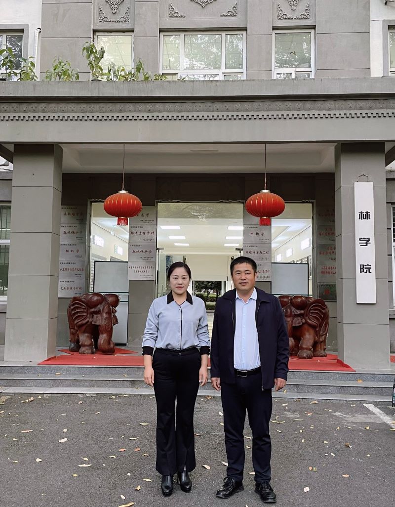 10月29日,太阳成集团tyc9728员工第一党支部书记李建伟到南京林业大学林学院学习交流,受到南京林业大学国家林业草原森林精准培育与监测工程技术研究中心副主任、林学院森林培育系副主任、博士生导师付芳芳教授热情接待。