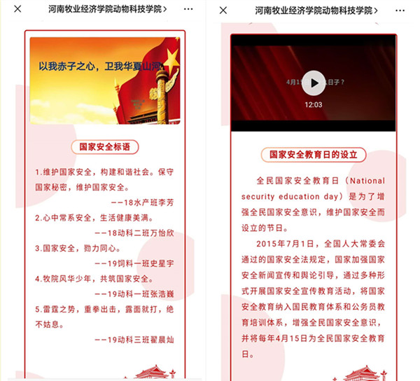 今年4月15日是第五个全民国家安全教育日,为深入学习贯彻习近平总书记关于总体国家安全观的重要思想,普及国家安全教育知识,增强员工国家安全意识,进一步夯实国家安全日宣传教育基础,根据学校总体工作安排,结合公司实际情况,公司开展了“国家安全人人有责”国家安全教育主题作品征集活动。