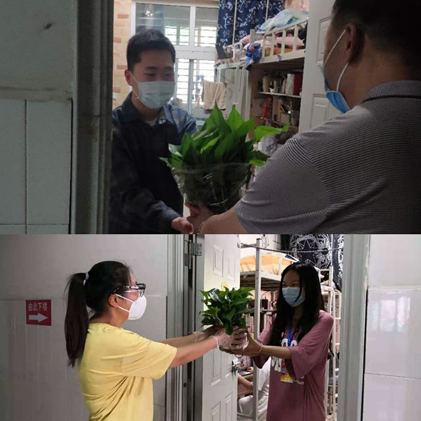 当同学们手捧绿萝的时候,他们感受到了来自学院员工工作队伍的人文关怀,他们表示一定会按照学校的要求,充实在宿舍期间的的集中生活,好好学习。