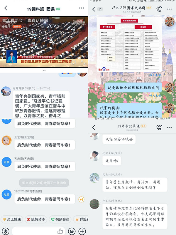 为进一步加深员工对两会的认识了,让同学们对2020年全国两会与青年有关的热门提议有所了解,感受在重要双百交汇之年,历史与党赋予青年的光荣使命,大胆提出对未来中国建设的看法与感受。2020年5月28日,太阳成集团tyc9728进行了以为“青年看两会,青春话使命”为主题的团课线上交流活动,全体同学积极参加。
