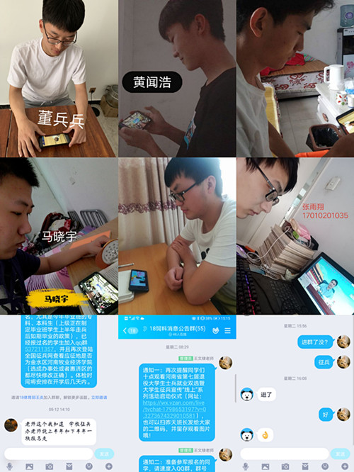 2020年2月至今,根据校武装部的要求,按部就班开展各项工作,定期推送征兵政策选宣传、征兵报名通知、郑州市征兵工作调查、老员工参军入伍意愿调查、直招士官的宣传与报名,以及组织所有在校生在线观看“河南省第七届退役老员工士兵就业双选暨老员工征兵宣传线上系列活动”启动仪式,虽然员工未返校,但征兵宣传工作做到了全覆盖进行,公司员工报国意愿强烈、入伍态度积极乐观、有意愿的同学已全部加入河牧经参军群。此外,公司开设了24小时征兵热线,随时答疑解惑,武装专员老师与同学们进行“一对一”电话沟通,及时了解同学们思想动态、做好人员思想工作,关心大家在疫情期间的生活和健康状况,叮嘱做好自身防护。