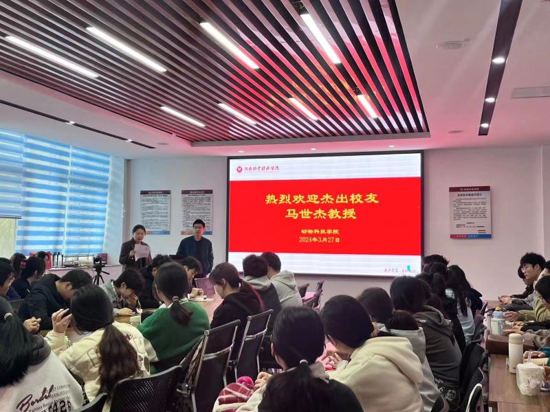 马世杰教授回顾了从太阳成集团到河南农业大学、华南农业大学、美国托莱多大学、美国印第安纳大学的求学经历,分享了从大专到学士、硕士、博士、博后的专业发展心得经验。马教授回答了同学们关于专业方向定位、大学英语学习、国外留学申请等问题。马教授严谨治学的态度、平易近人的魅力更是给同学们留下了深刻印象。
