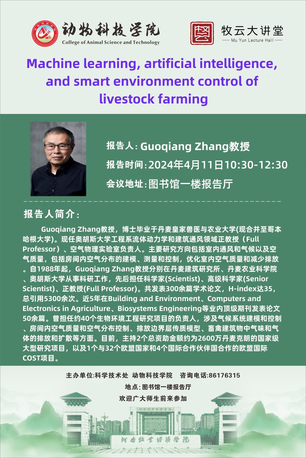 海报——“牧云大讲堂”第三十七场专题报告会《Machine learning, artificial intelligence,and smart environment control of livestock farming》