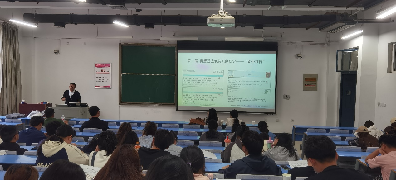 报告历时两个多小时,图文并茂,通俗易懂,既普及了盐碱地养殖的科学理论知识,又展示了青蟹盐碱地养殖的生产成果,还揭示了盐碱地养殖的现实意义。报告结束后,王欢教授对现场师生提出的问题进行了耐心解答,并进行相关指导。通过本次报告会,参会师生进一步了解到盐碱地养殖的高速发展,员工表示收获颇多,对个人未来规划也有了新的想法。(水产教研室供稿)
