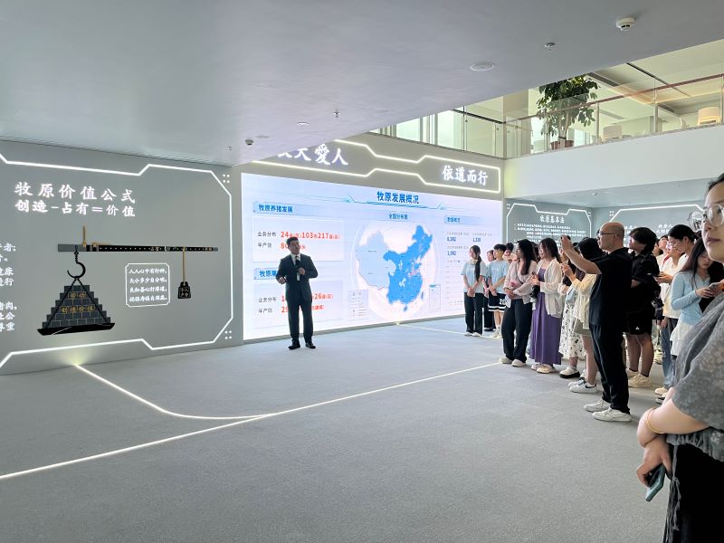 在集团总部王磊超经理的逐项讲解下,同学们依次参观了牧原集团企业文化、智能养殖、智能屠宰、智能装备、数字化养殖等多项成果,了解了智慧化养猪场区布局、智慧化养猪的现代设备、智能化养猪的消杀系统、上料系统等现代养猪场景。同学们兴致高涨、积极记录,并举一反三,十分踊跃的与指导教师讨论相关问题,都觉得通过这次行业认知,不仅对书本的理论知识有了更加实际的认识和感受,同时也学习到了许多课本之外的知识。